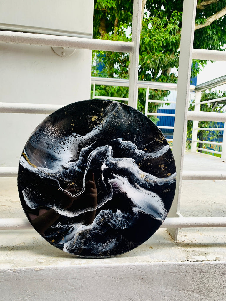As you look deeper into the resin, the swirling textures evoke a sense of both serenity and energy, as though time has been frozen yet remains dynamic. Moment is an invitation to pause, reflect, and appreciate the ever-changing patterns of life.
